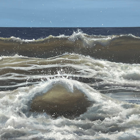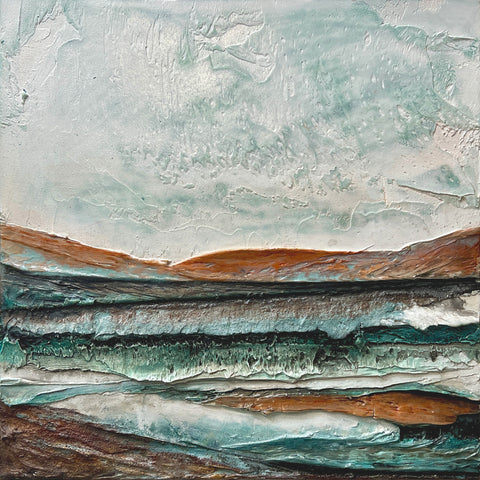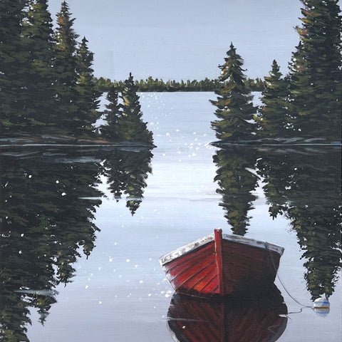 Her newest series is “Nova Scotia Strong, Isolation” series, a contemporary portrayal of Nova Scotia’s beautiful coast. A combination of knife and brush, each acrylic painting is created through a series of layers and washes – creating a moody memory of the scene.
