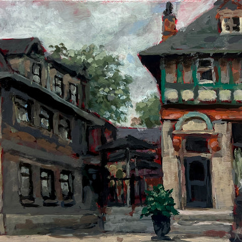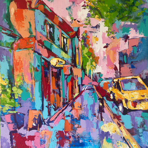 Jan Davison is a painter based in Halifax, Nova Scotia. Davison graduated from NSCAD University with her Bachelor of Fine Art degree in 2001. She also studied at a painting studio semester abroad at Wimbledon School of the Arts in 2021. With the use of vivid colour she represents the streets of Halifax. Hailing from a line of architects, Davison grew up around great design. She is enthusiastic about sun and warmth and often uses vermillion red as her starting point. “I often see the South of France on our streets - in the summer under a certain light - we are on the same longitudinal line as Nice, in fact. This fuels my inspiration and our local home owners’ paint choices act as a collaboration.”