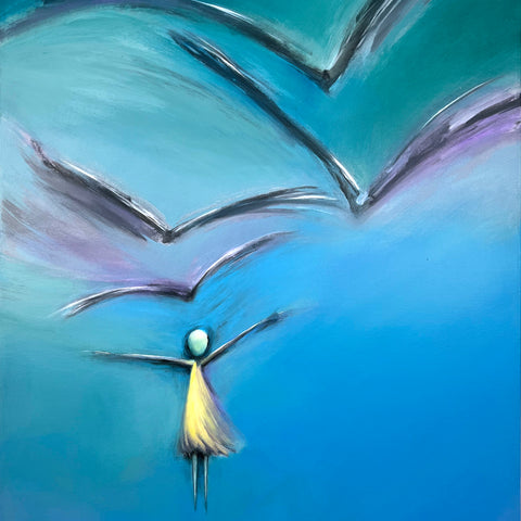 Eleni’s success in both group and solo shows in Ontario and Nova Scotia, has lead to her artwork being included in collections in Canada, the United States and Europe. A series of vibrant, ever-changing skies is bringing a sense of hopefulness and possibility to her art practice.