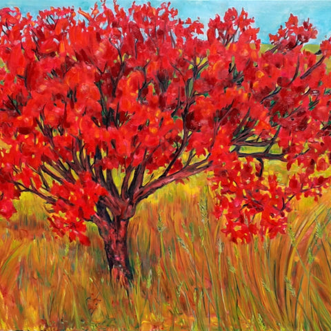 Native to Nova Scotia, Kelly is a fan of “support local”, believing that your community is only as good as you make it. She uses her art to promote and support her local area as much as possible and is involved with everything from mentorship programs and bursaries, to operating "A Is For Art" (a free and supportive platform for local artists). Whether painting or teaching, or showing, Kelly enjoys a holistic approach to art and encourages all art on all levels. Kelly’s home studio and gallery are in an old and romantic Victorian home located in the lovely town of Windsor. She paints standing and moves quickly to loud music, which has resulted in a quick dance break here and there. Kelly paints in both acrylic and oil and mostly creates nature and scenic pieces using some brush but mostly painting knives and trowels. She prefers to paint on large stretched canvases or wooden panels using a heavy pallet of deep and intense colours and applying with layered technique. Not a fan of being confined or limited by structure, the shape and composition often form as she paints. This allows more freedom and a bond is formed between the artist and the work as they both go through the creation together. She is especially known for her moody coastal scenes and her love of red with her poppy series.