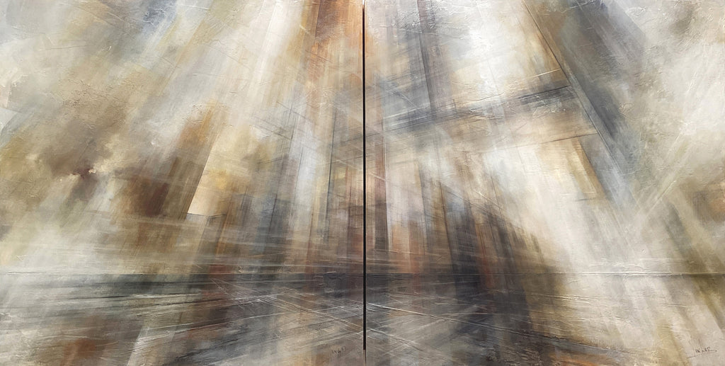 With the new “Ascension” series, I propose to discover a moving urban amalgam. Little by little, the details are revealed and relate more to getting closer to the shore in order to discover the vestiges of a past generation, a project currently under construction, the bribes of an urban or futuristic city.