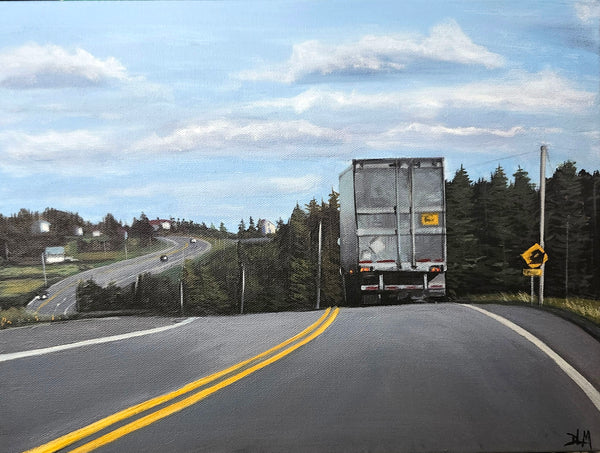 Donna works with acrylics on canvas. She prefers to mix her colour values from a small palette that often includes two shades of blue, and one each of yellow, red, white, and black. Her paintings are currently on display in the “Dart Gallery”, (Dartmouth), Teichert (Halifax) and “Going Coastal” (Chester), and have been acquired by private collectors from nine of Canada’s ten provinces, from the United Kingdom, and from Minnesota, New York, California, and the Dominican Republic. Donna’s paintings have been chosen as the cover art for Northwood’s “Life” magazine (December issue) for the last three consecutive years.