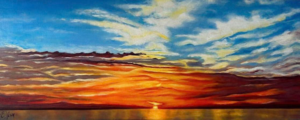 Eleni’s success in both group and solo shows in Ontario and Nova Scotia, has lead to her artwork being included in collections in Canada, the United States and Europe. A series of vibrant, ever-changing skies is bringing a sense of hopefulness and possibility to her art practice.