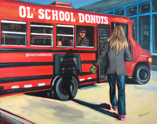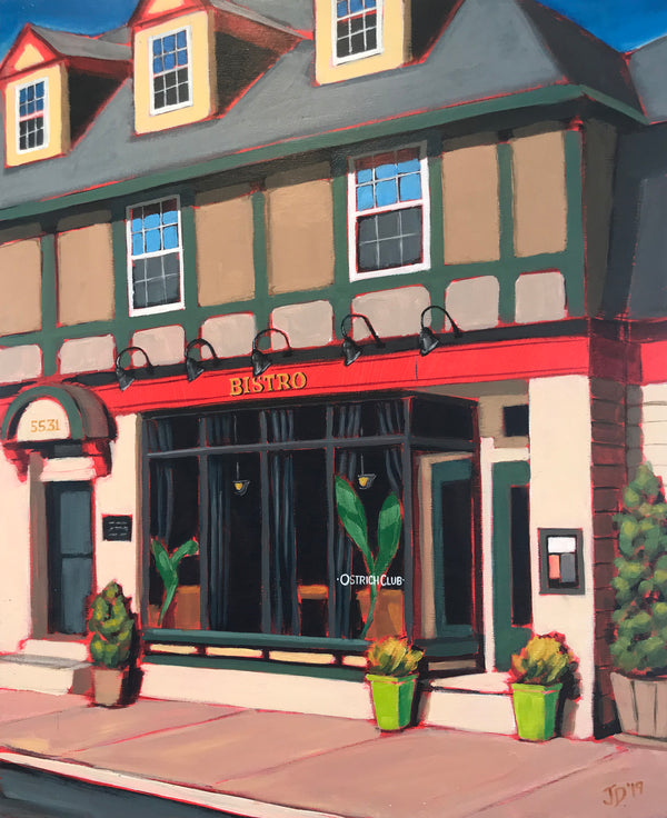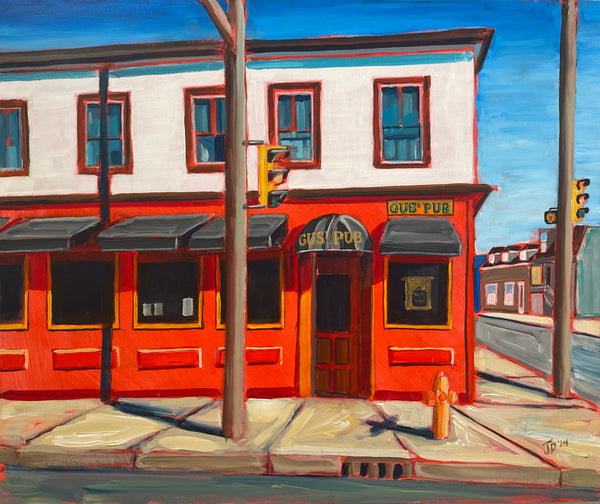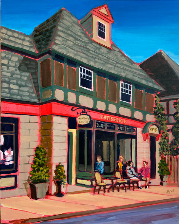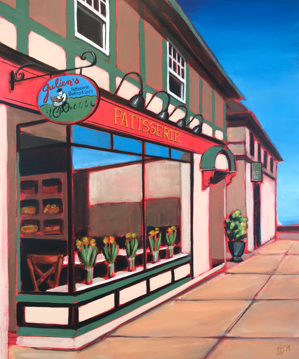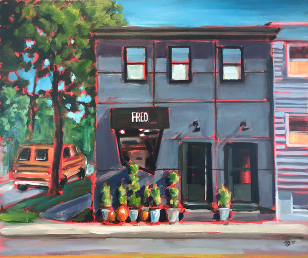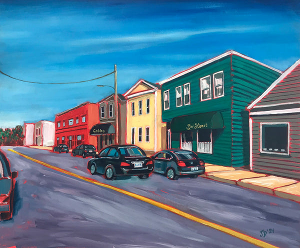 Jan Davison is a painter based in Halifax, Nova Scotia. Davison graduated from NSCAD University with her Bachelor of Fine Art degree in 2001. She also studied at a painting studio semester abroad at Wimbledon School of the Arts in 2021. With the use of vivid colour she represents the streets of Halifax. Hailing from a line of architects, Davison grew up around great design. She is enthusiastic about sun and warmth and often uses vermillion red as her starting point. “I often see the South of France on our streets - in the summer under a certain light - we are on the same longitudinal line as Nice, in fact. This fuels my inspiration and our local home owners’ paint choices act as a collaboration.”