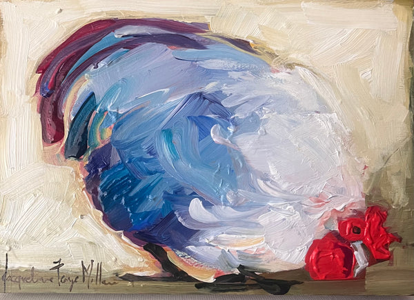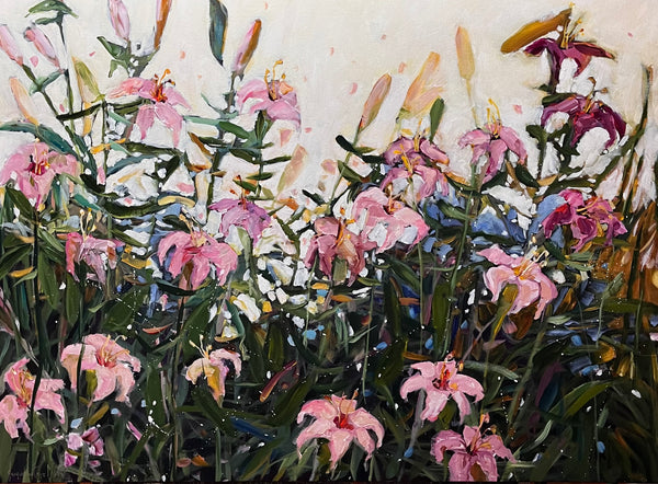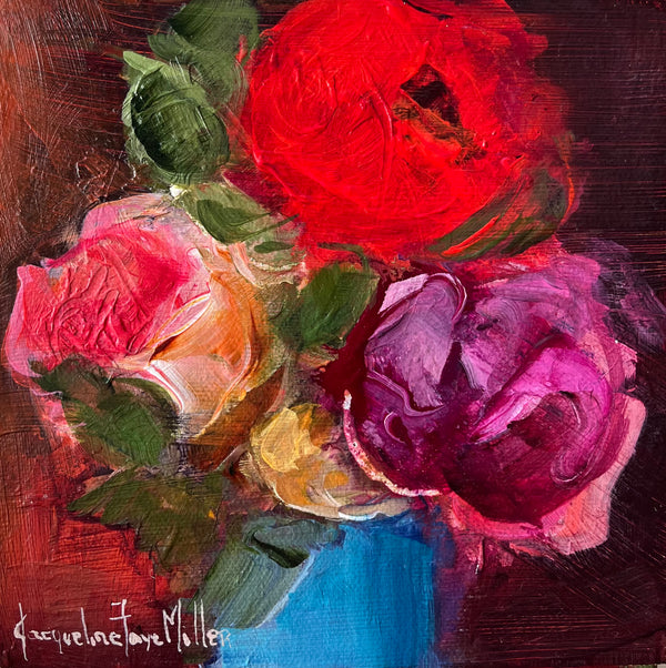 Born in small town Saskatchewan, Jacqueline has worked and lived in the prairie provinces of Manitoba, Saskatchewan and Alberta. Returning to Saskatchewan in the late 90’s and now living in Saskatoon. Jacqueline has worked diligently over the last 30 years developing her skills as an artist through self-teaching, university curriculums and various professional artist workshops. Jacqueline works out of her home based studio and as part of her creative process, and commitment to her craft, she makes it a daily habit to do something art related. Jacqueline is a disciplined painter, prolific, versatile and experimental with a preference for acrylics on canvas. She paints in series and collections to keep her passion and ambition fresh. Jacqueline’s distinctive style – strong confident brush strokes remaining loose, fluid and spontaneous, brings varied subjects to life with vibrant colors. Her muse might take her through, urban gardenscapes, becoming up close and personal with all the floral beauties, rural landscapes, to Northern lakes, through the city, up in the clouds or for the fun of it, painting whimsical portraiture. Inspiration also arrives in the form of medium she uses. Favorite past time is reaching for her oil pastels. As it turns out her representational, loose and impressionistic style is a perfect fit for this buttery medium. Whether impressionistic, expressive or abstract, a confident brush stroke, the swipe of a crayon or intricate pencil helps build personality into every one of her works, whether still life, whimsical portrait or landscape. These are the tools she creates with. Jacqueline has received awards over the years and has been published in a number of magazines. Her paintings are represented in private, public and corporate collections throughout Canada. Recent highlights – Saskatchewan Arts Board purchase. Her favorite quote from a patron: “Everybody sings in a different Color”