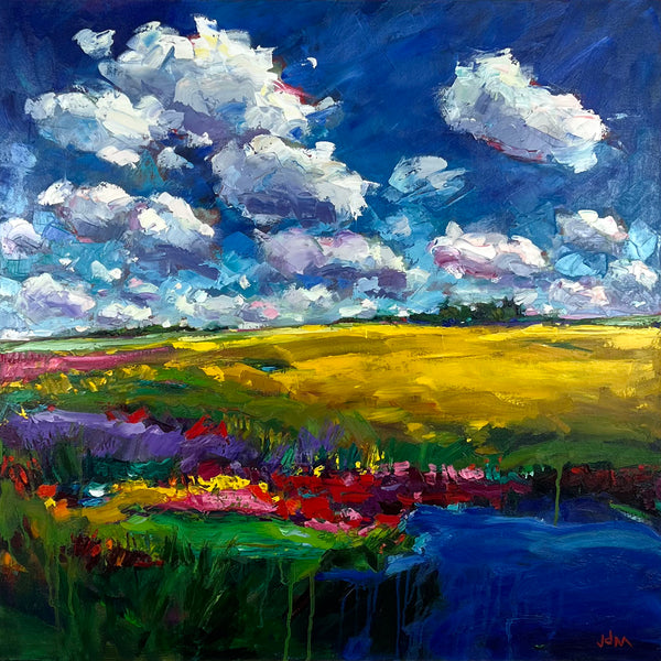 Jamie McCallum grew up on a cattle ranch just south of Brandon, Manitoba. Her early years on the farm have always been a source of inspiration and her love of animals and the vast prairie landscape are often reflected in the subject matter of her work. Jamie was formally trained in North Dakota where she received a degree in graphic design. After graduating, she ventured to Minnesota where she continued to built on her knowledge and love of art throughout her career. Whether it was graphic design, photography, art & framing galleries, or many years in the beauty industry - her experiences have all contributed to her abilities and helped hone her eye for composition, color, and balance. Her desire to paint has always been present and taking brave steps toward an art career have been a long time coming. Painting and creating are true passions for Jamie, and after returning to Canada in 2013 she has been afforded the opportunity to finally follow this dream. Her work is contemporary, gestural, and celebrates a broad subject range full of whimsy and humanity. Jamie pushes proportions to evoke mood and curiosity, and utilizes the power of color and texture to further extend these boundaries. Jamie currently makes her home outside of beautiful Riding Mountain Park National Park in Manitoba.