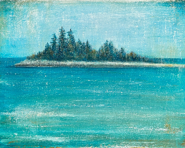 Her newest series is “Nova Scotia Strong, Isolation” series, a contemporary portrayal of Nova Scotia’s beautiful coast. A combination of knife and brush, each acrylic painting is created through a series of layers and washes – creating a moody memory of the scene.