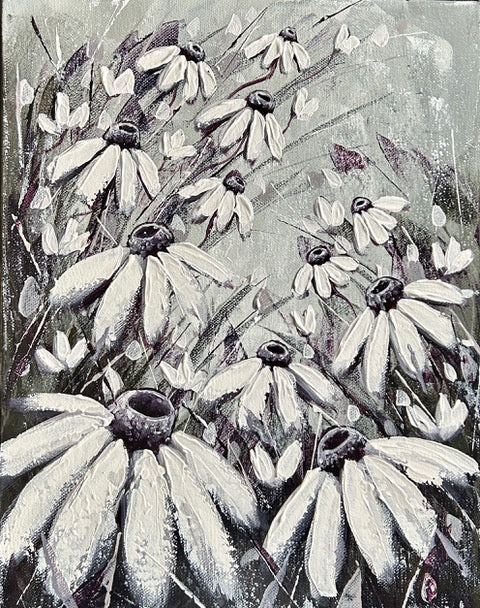 Native to Nova Scotia, Kelly is a fan of “support local”, believing that your community is only as good as you make it. She uses her art to promote and support her local area as much as possible and is involved with everything from mentorship programs and bursaries, to operating "A Is For Art" (a free and supportive platform for local artists). Whether painting or teaching, or showing, Kelly enjoys a holistic approach to art and encourages all art on all levels. Kelly’s home studio and gallery are in an old and romantic Victorian home located in the lovely town of Windsor. She paints standing and moves quickly to loud music, which has resulted in a quick dance break here and there. Kelly paints in both acrylic and oil and mostly creates nature and scenic pieces using some brush but mostly painting knives and trowels. She prefers to paint on large stretched canvases or wooden panels using a heavy pallet of deep and intense colours and applying with layered technique. Not a fan of being confined or limited by structure, the shape and composition often form as she paints. This allows more freedom and a bond is formed between the artist and the work as they both go through the creation together. She is especially known for her moody coastal scenes and her love of red with her poppy series.