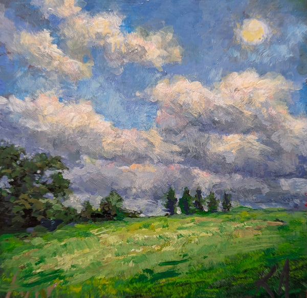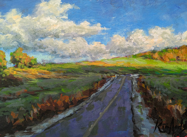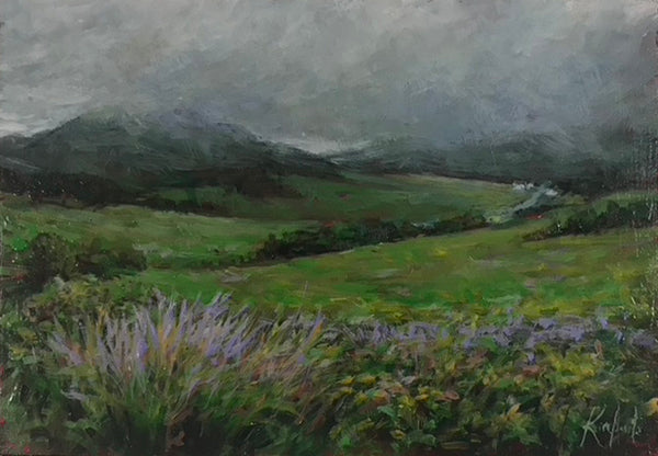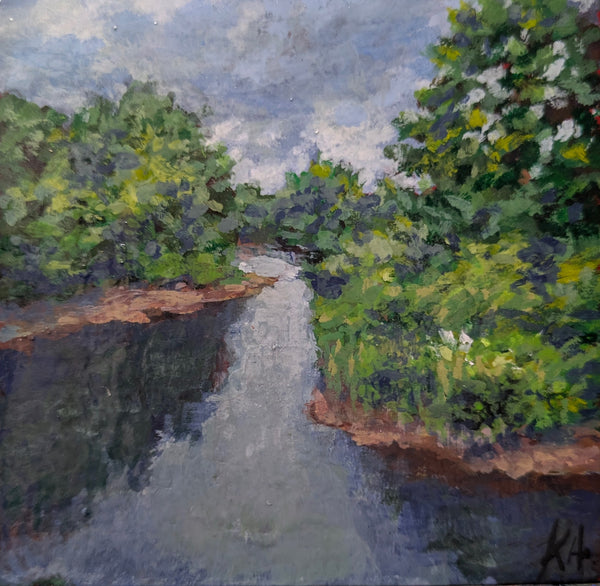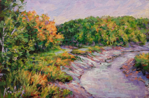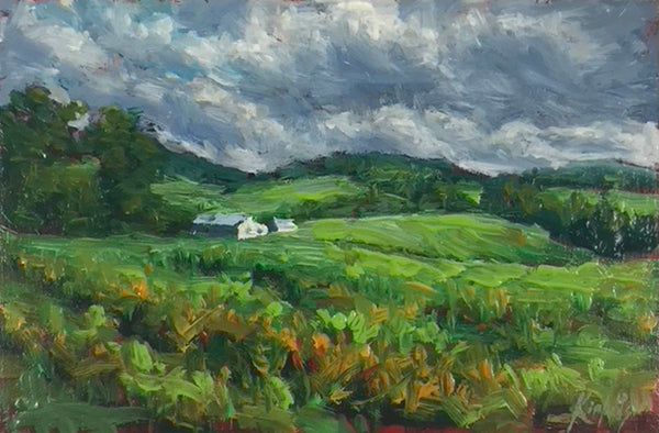 Throughout this time, Kim continued his art and worked in the mediums of sculpture and photography before returning to painting in oils on canvas. Kim paints landscapes but beneath the surface he is exploring the relationship of the viewer to the natural environment. The idea that animals (including humans) ideally like to position themselves in their environment to be able to see and not be seen is a fundamental concept he works with in his paintings. By both following the rules and occasionally breaking them he creates scenes that draw in the viewer and allows them to enter into another environment. He often works on smaller canvases as they require a greater focus and precision to both invite the viewer and engage them with the complexities that embody the soul of that landscape.