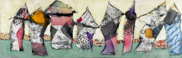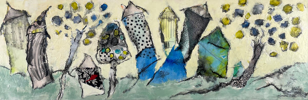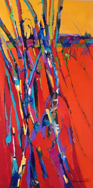 “My art is a celebration of the world around me --- the landscape, the weather, the everyday fabric of life. Lively brushwork, multiple layers and vibrant joyful colors are common elements in my paintings. I love to work with acrylic and collage because of the absolute freedom it gives me to create, re-create, select, emphasize, eliminate and re-imagine.I start my paintings with loose, gestural mark-making and then move on, responding intuitively to what appears on the canvas. I continue to dialogue with the painting and eventually, on the best of days, the painting takes over and finds its own story. Recently I have returned to landscape for my inspiration and I find my work moving further toward abstraction as I attempt to capture the energy, spirit and essence of my subject matter.”