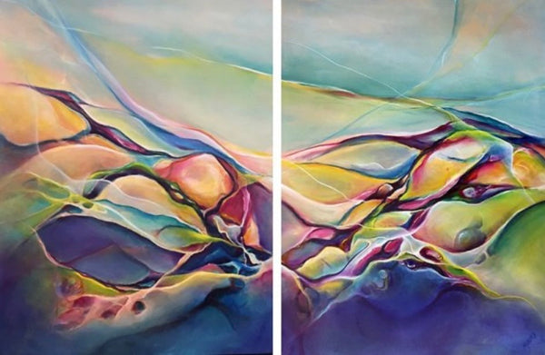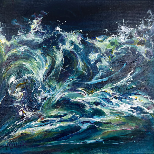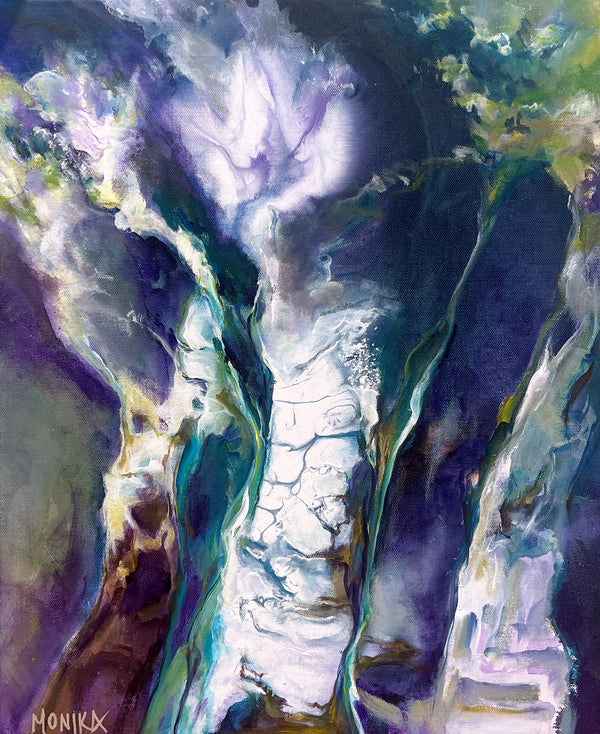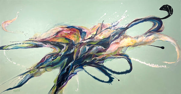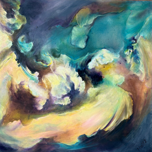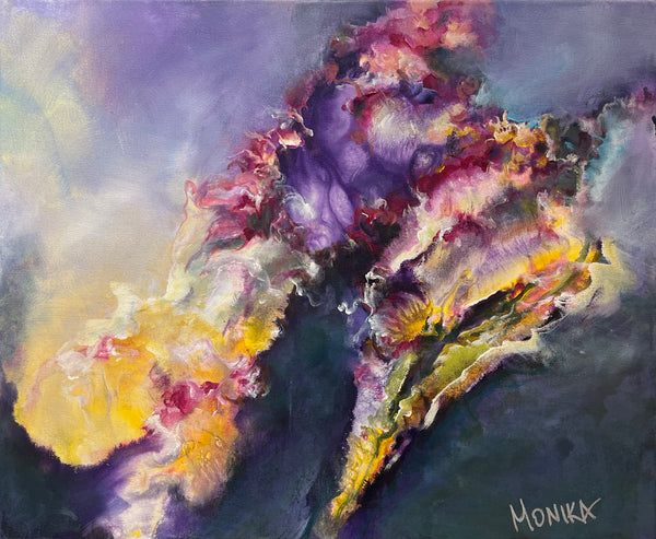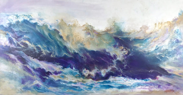 Canadian artist Monika Wright creates expressive abstract paintings that reveal dynamic elements of color nuance, of magical light that glows amidst the darkness, of brushstrokes that are both wild and gentle, conveying movement and mindfulness.