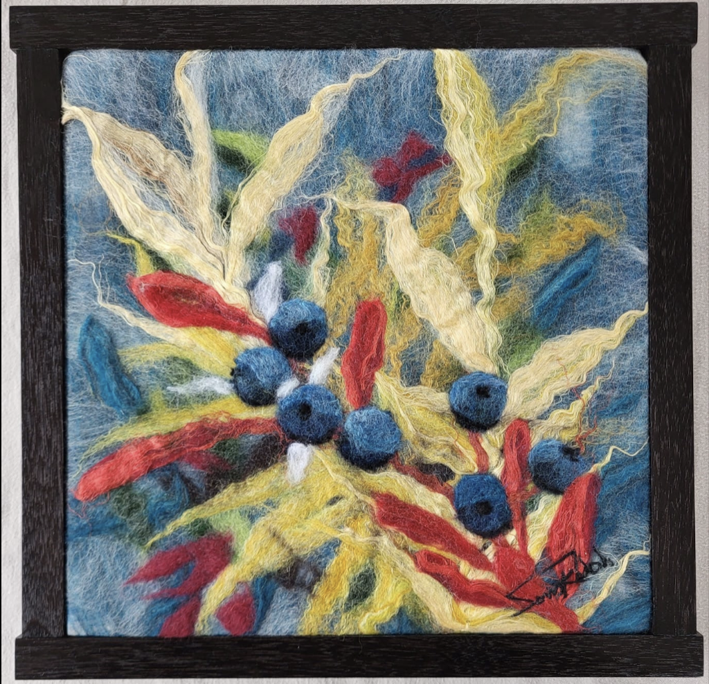 Merino, Wool, Silk, Linen & Mohair with a Black Walnut frame