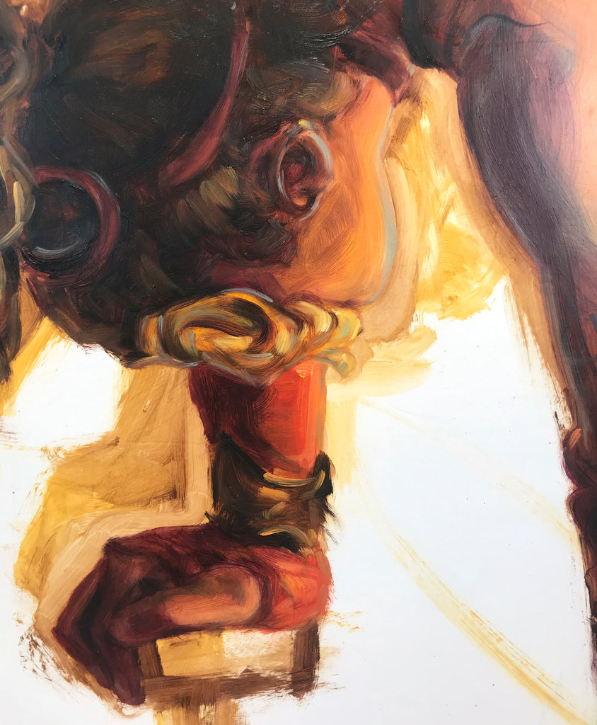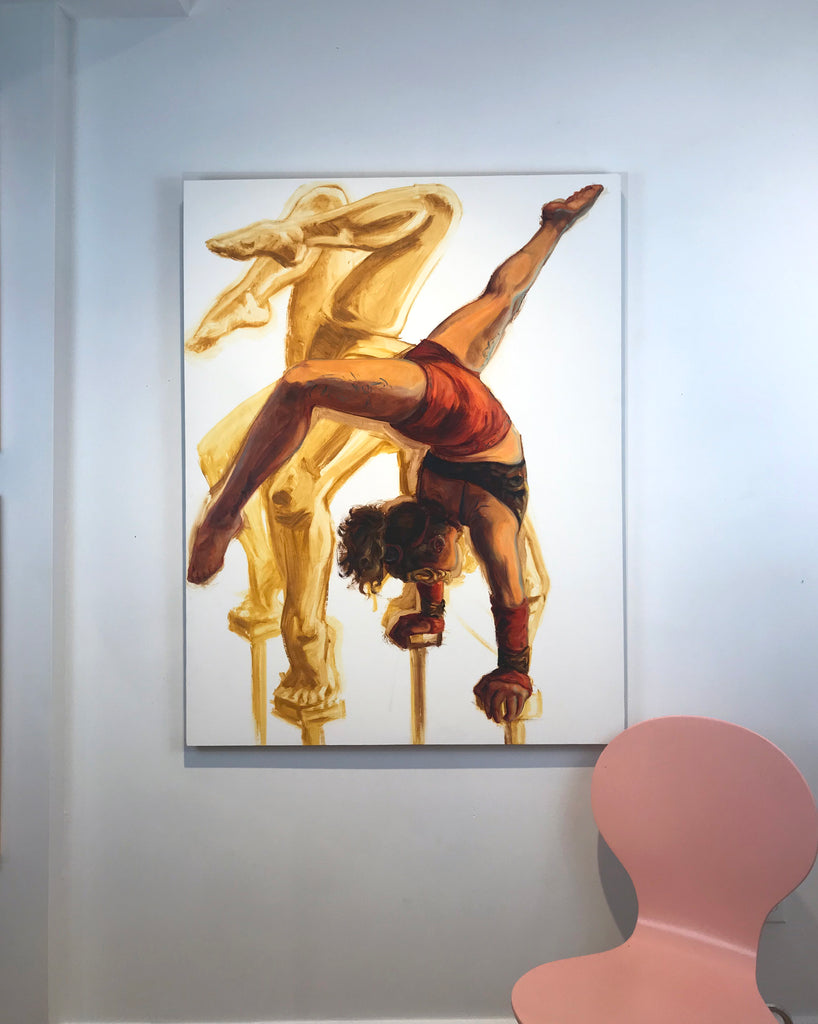 As both a performer and a visual artist I find myself fascinated by movement, and depictions of movement that capture the vivacity of their subjects. This series was created for my show ‘Marvelous Miscreants’ at the Anna Leonowens Gallery, which aimed to invite viewers into an appreciation for the artistry of circus. As audience members, a circus is somewhere to escape the mundane, to be inspired and awed. As performers, it is a traveling home made of people and wonder and shared stories. I collaborated with each performer to create costumes and record a routine of their creation. The ensuing paintings were an exercise both in distilling their performances into a handful of poses, and in letting go, as each new pose involved obscuring the one underneath.
