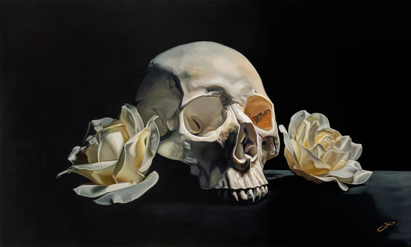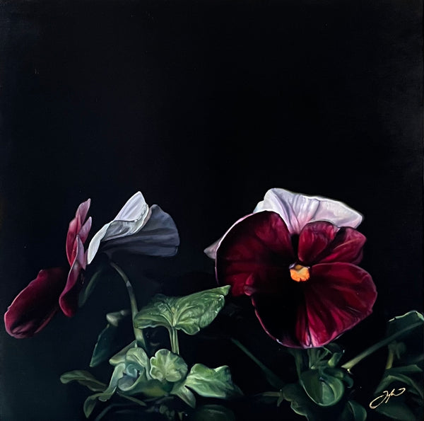 -  Tylor McNeil is an Atlantic Canadian artist living in the west. The fibre of who he is and where his art comes from is still deeply entrenched in his east coast values set in his upbringing. As a young child Tylor had much difficulty in school. When he and his sister were given oil painting sets on the same Christmas which she quickly grew bored of, he found his natural calling. He started off by taking over both art sets and over the next decades he grew and developed his talent. As he blossomed through art he was supported by his mother, various school teachers who let him express himself through art, and mainly his sister who, in their teens, would ride around on his motorcycle with him, holding paintings to help present his work to galleries for representation. His sister was and still is, one of his biggest supporters. Tylor’s father on the other hand was skeptical as he held old school male values which tied him to a belief of what men should be. This would become an overarching theme later on in Tylors works. Masculinity and struggles between generations and where males fit into society are continual themes originating from these early days. At one of Tylor’s first art shows his father realized his sons’ talent and seemed to finally understand and accept that it was okay to be different and to value Tylor’s talents as they were. Tylor's love of, and skill at oil painting grew through the years leading him to Mount Allison University in New Brunswick where he gained formal training and was happy to receive schooling with a very like minded group of people. After a couple years of university training Tylor felt he had gleaned what he wanted from school and set out to pave his own way. Tylor spent several years in British Columbia before moving to Cape Breton Island with his wife and child. There he really came into his own and blossomed as an artist creating more cohesive bodies of work. He might say it was the sea and salt air, but it was definitely a transition with the birth of his son that propelled him forward into a full time career. After multiple dabblings into a variety of styles and genres Tylor found great satisfaction and challenge as a nature and floral artist. Over the past four years he has, and continues to hone his craft and skill in this area. His proficiency has paid off in having multiple gallery showings in Nova Scotia, securing gallery representation, and a lucrative contract with Canada Post to name a few highlights. Through this experience Tylor was propelled into becoming a professional artist. In the past year and a half Tylor has returned to the very west coast of British Columbia on Vancouver Island where he has a private studio and continues to create and grow his talents in florals as well as toying in plein air and natural landscapes.