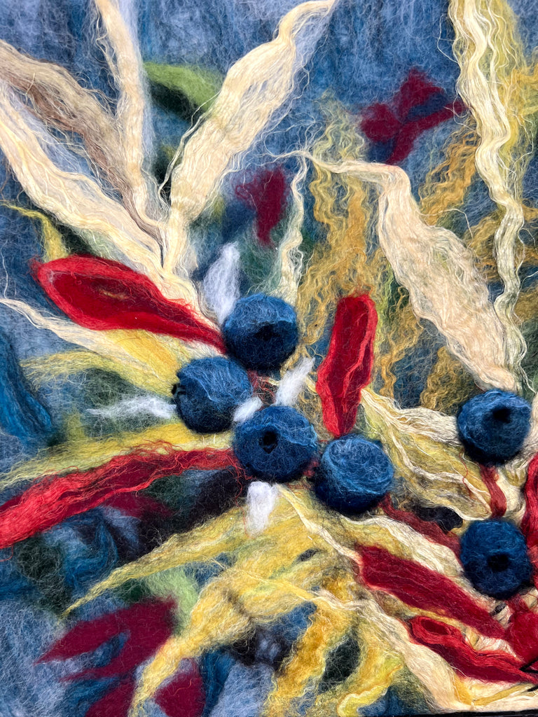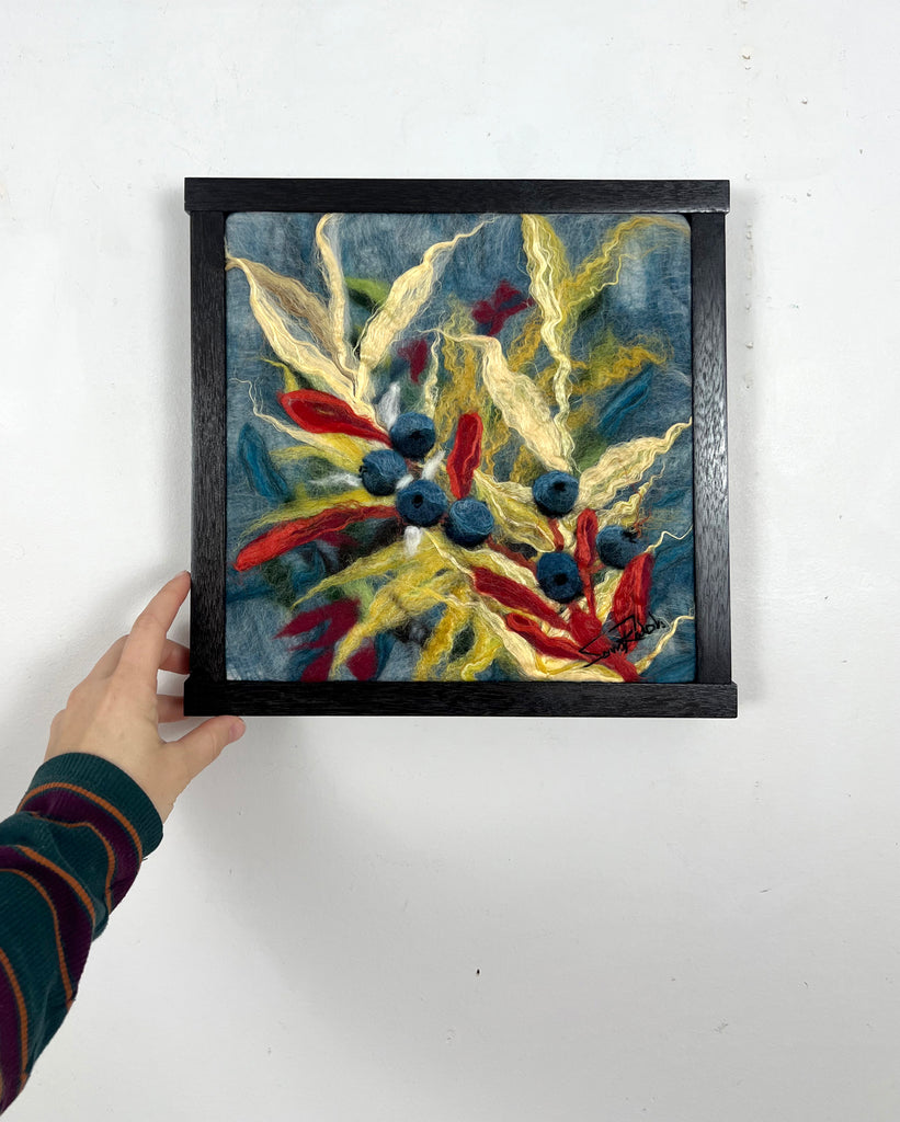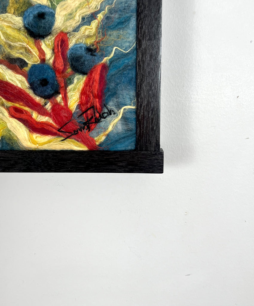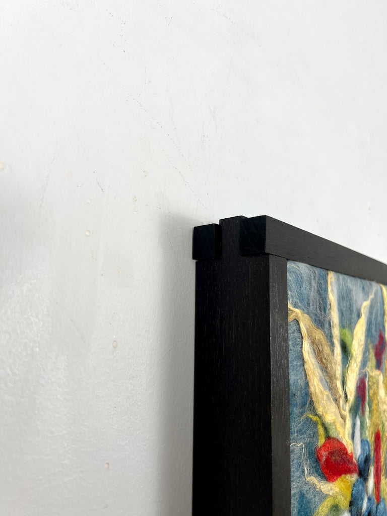 Merino, Wool, Silk, Linen & Mohair with a Black Walnut frame